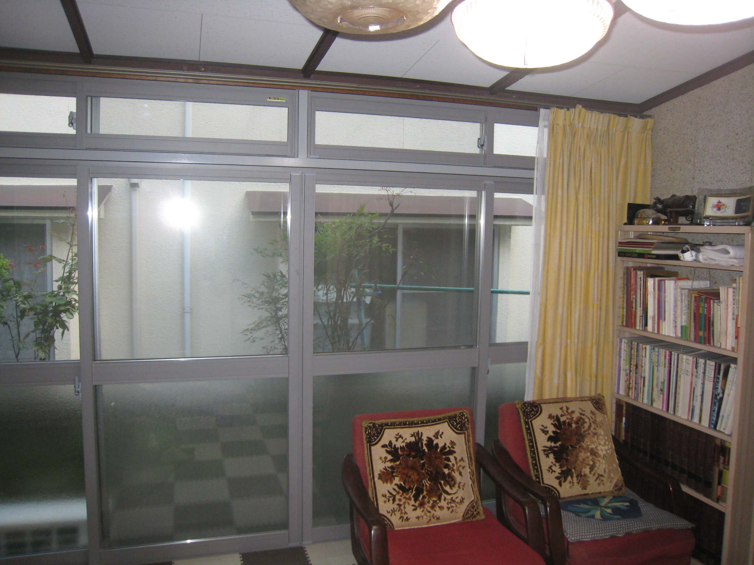 以前も、工事実績があったお客様で、今回、エコポイントの制度を利用した工事。この窓は外窓に、約W=3600、H=2150のランマ付きのサッシが付いていたので、方立てと無目に木を使い、下地を取付した後に、内窓を取付しました。既存の窓枠が、入り組んでいたりしたので取付下地を木で作り、その後取付をし、内窓設置6か所、外窓交換2ヶ所、その他工事で、朝から夜までかかりお客様に気を遣わしたかも知れないのですが、工事に関して、御主人も奥様もとても喜んでいるとのお言葉を頂きました。